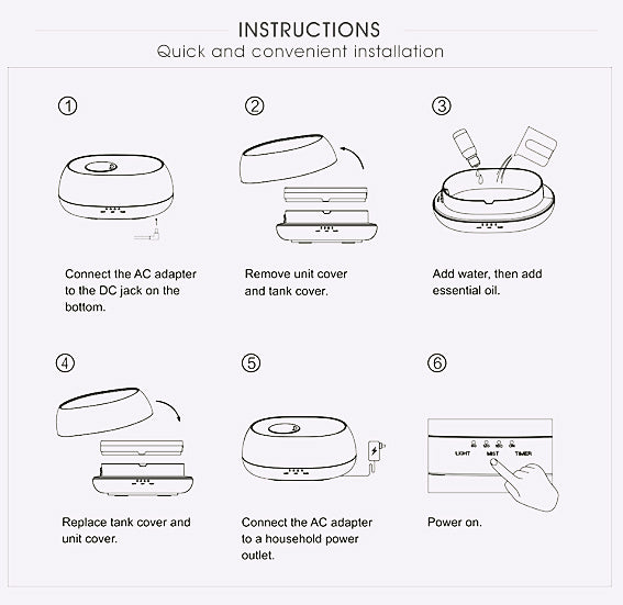 1. IR Remote Control(mist/timer/light control)